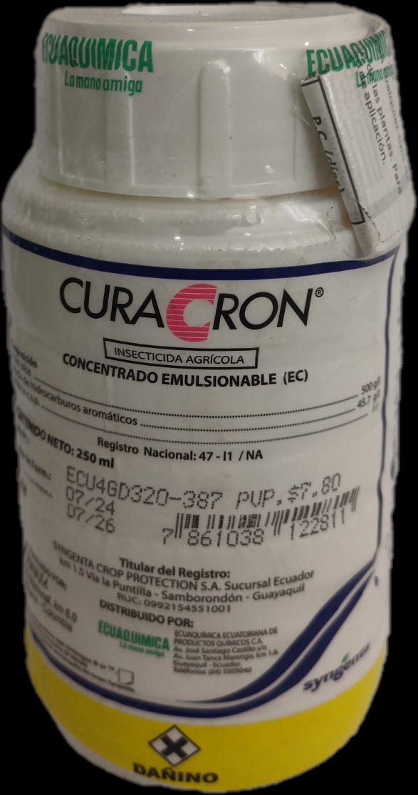 Insecticida de amplio espectro a base de profenofos, eficaz contra plagas masticadoras y chupadoras como pulgones, trips, orugas y mosca blanca. Curacrón 250 ml actúa por contacto e ingestión, ofreciendo acción rápida y persistente en cultivos como rosas, ornamentales, hortalizas y frutales. Recomendado para programas de manejo integrado de plagas, especialmente en ambientes con alta presión de insectos.
