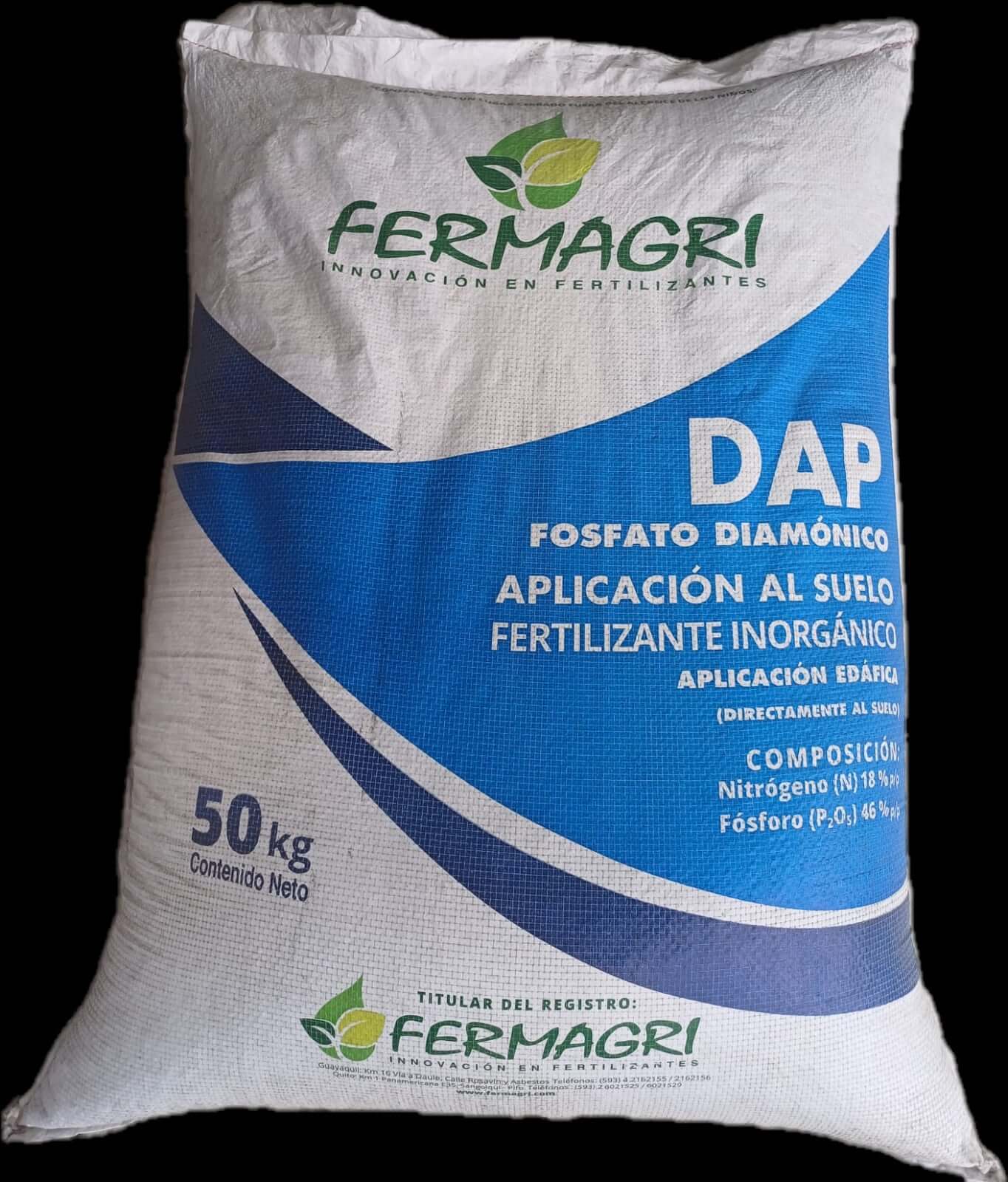 Fertilizante granulado de alta solubilidad, formulado con 18% de nitrógeno en forma de amonio y 46% de fósforo disponible, ideal como abono inicial en etapas tempranas del cultivo. El DAP 18‑46‑0 (diammonio fosfato) ofrece una liberación rápida de nutrientes, promoviendo un desarrollo vigoroso de raíces, germinación eficiente y establecimiento temprano del cultivo. DAP 18‑46‑0 es versátil y se usa en maíz, trigo, hortalizas, frutales y extensivos, en aplicaciones pre‑siembra, al voleo o como banda de inicio