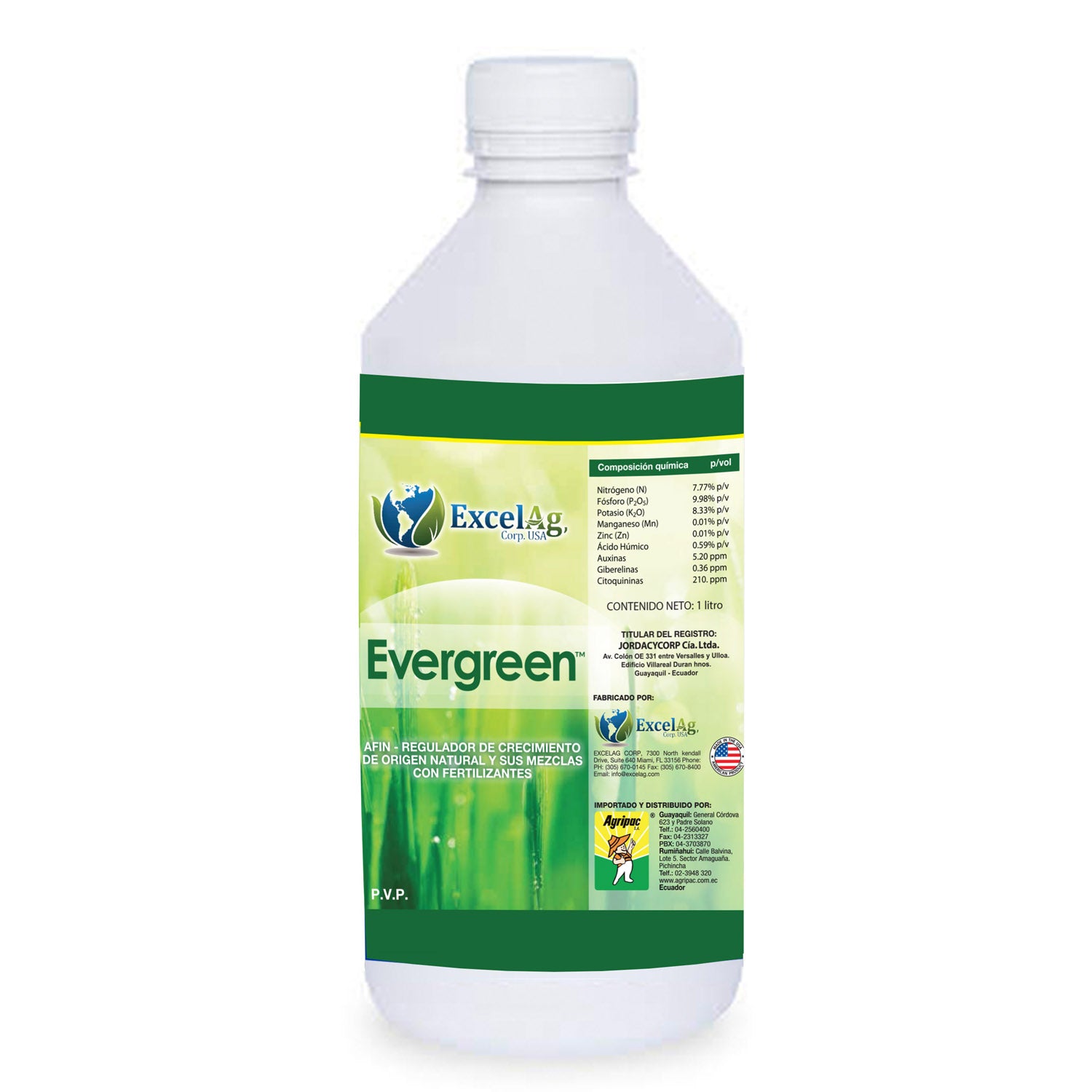 • Evergreen es un producto fabricado en los EE.UU., que contiene un complejo de 22 elementos nutricionales que se translocan dentro del sistema vascular de la planta por acción sistémica.