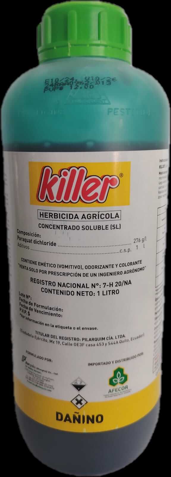 Killer actúa eficazmente sobre el follaje y se inactiva al contacto con el suelo, permitiendo siembras posteriores sin residuos persistentes. Perfecto para limpieza de terrenos, bordes de cultivos y zonas infestadas, con resultados visibles en pocas horas.