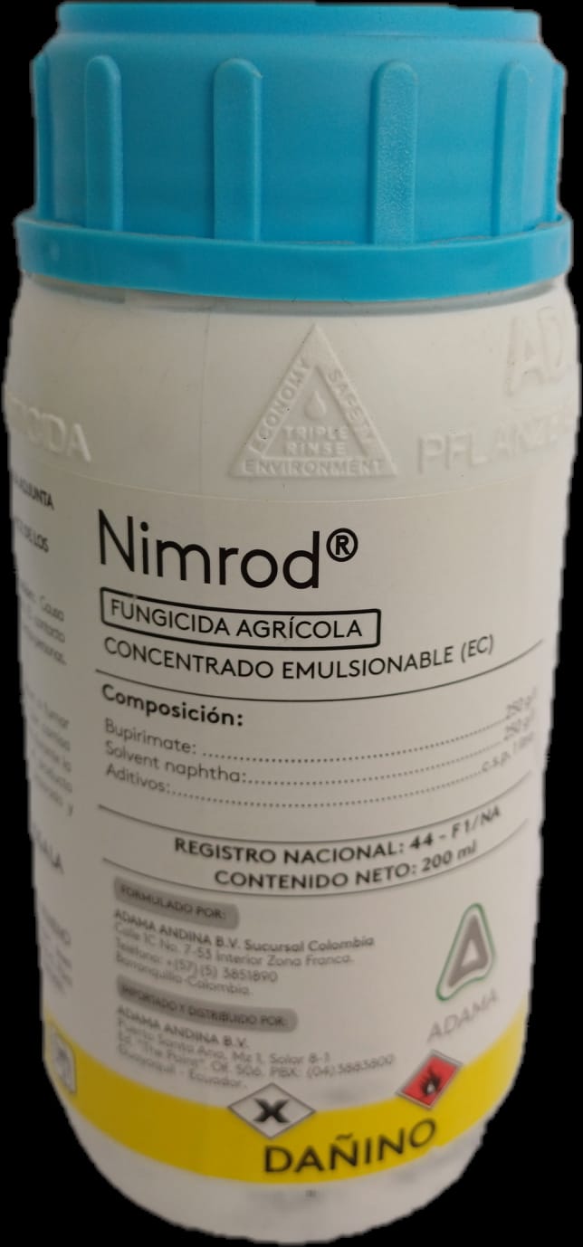 Fungicida sistémico y traslaminar a base de bupirimate, con propiedades preventivas, curativas y erradicantes contra enfermedades fúngicas como el oídio. Nimrod es ideal para proteger rosas, ornamentales, hortalizas y frutales gracias a su acción prolongada y penetración en el tejido vegetal. Especialmente eficaz en programas de rotación para evitar resistencia.
