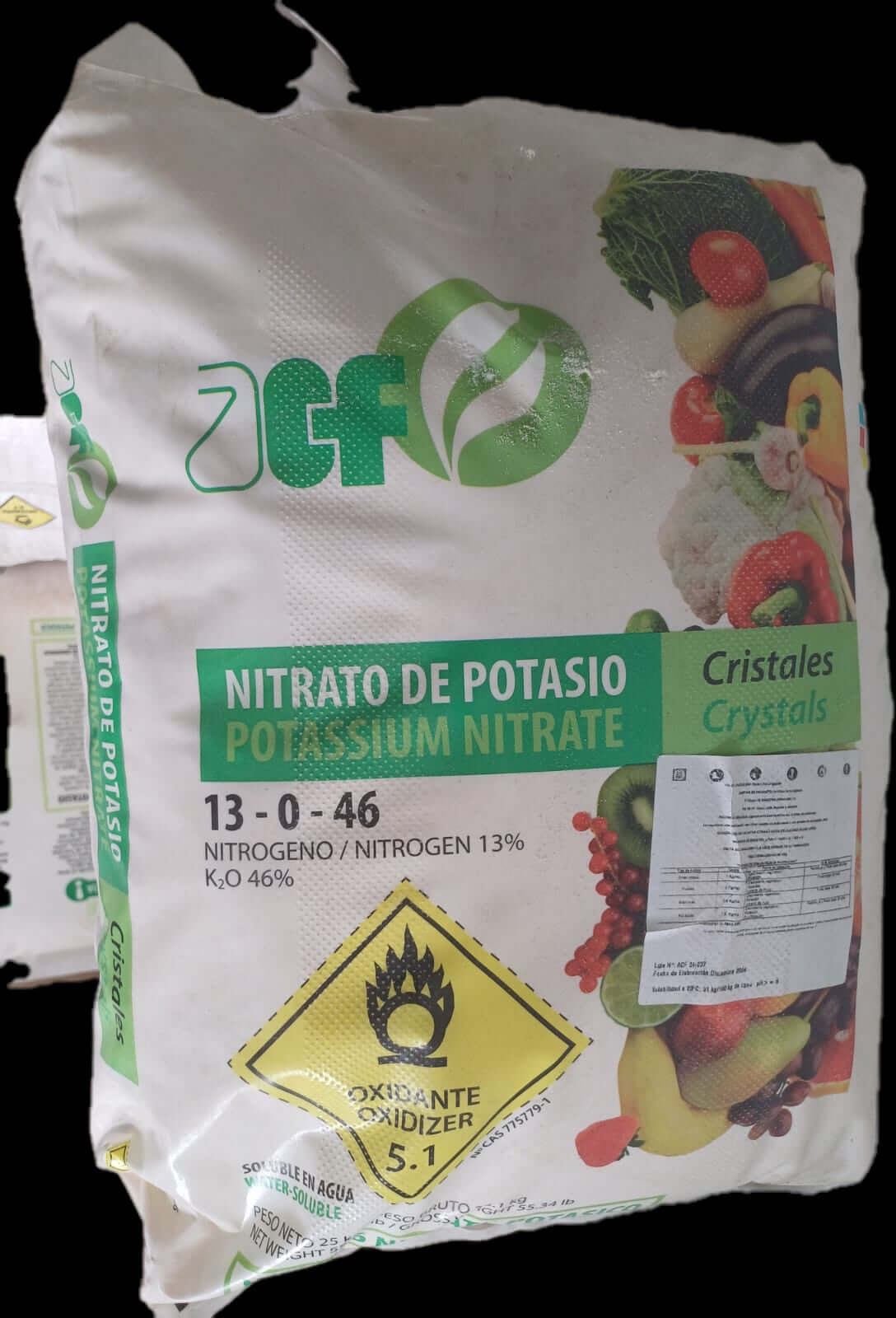 Fertilizante hidrosoluble a base de nitrato de potasio, ideal para aportar nitrógeno y potasio altamente disponibles, esenciales para el desarrollo vegetativo, la floración y la formación de frutos.
