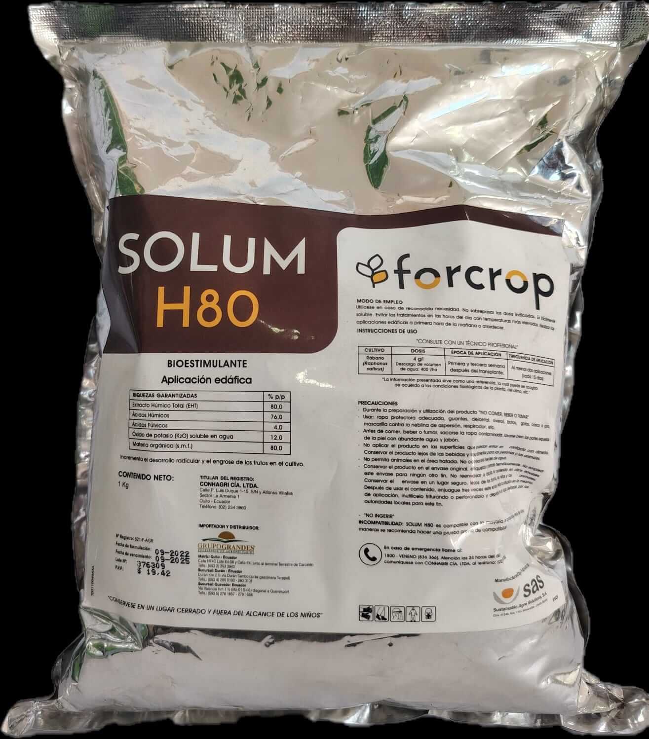 Solum H80 Folcrop 1 kg es un producto no peligroso, libre de restricciones de transporte, ideal para agricultura ecológica, cultivos intensivos y programas de regeneración de suelos empobrecidos.
