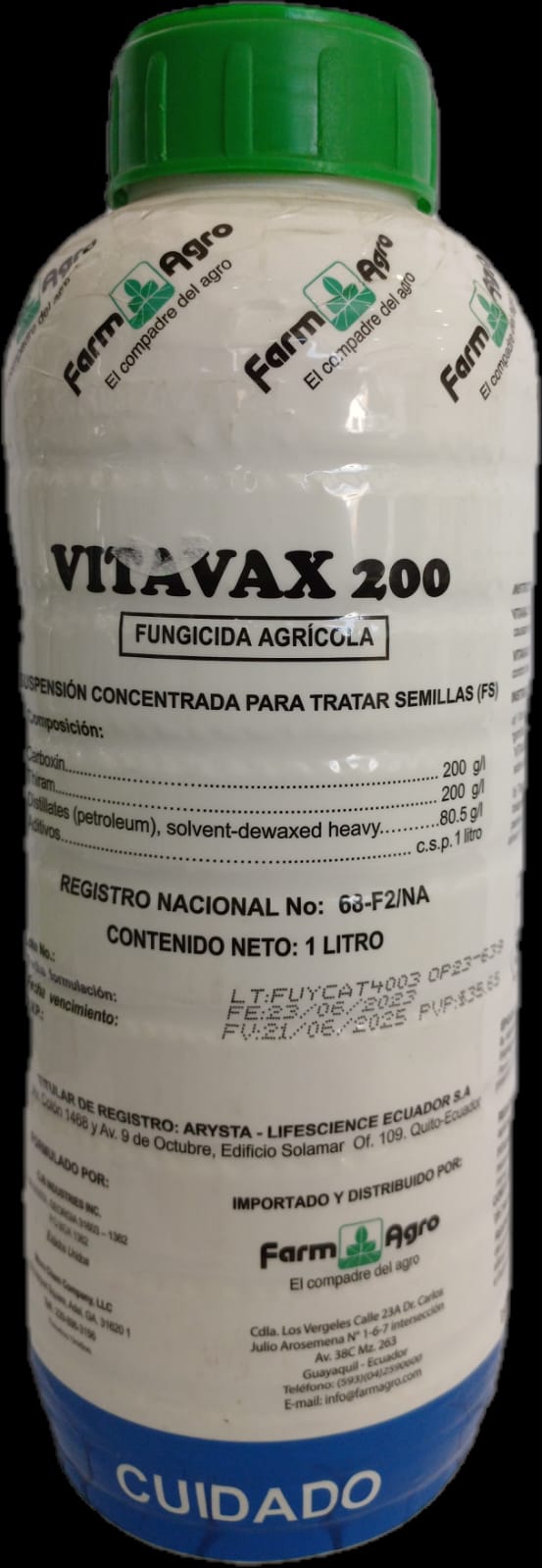 Fungicida sistémico formulado con carboxin, especializado en el tratamiento de semillas y control de hongos del suelo como fusarium, rhizoctonia y otros patógenos radiculares. Vitavax, Farmagro 1 L protege las raíces y cuello de la planta desde la germinación, asegurando un establecimiento sano y vigoroso del cultivo. Recomendado para rosas, ornamentales, hortalizas y cereales en etapa temprana.